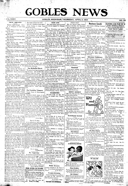Gobles news. Vol. 35 no. 28 (1925 April 2)