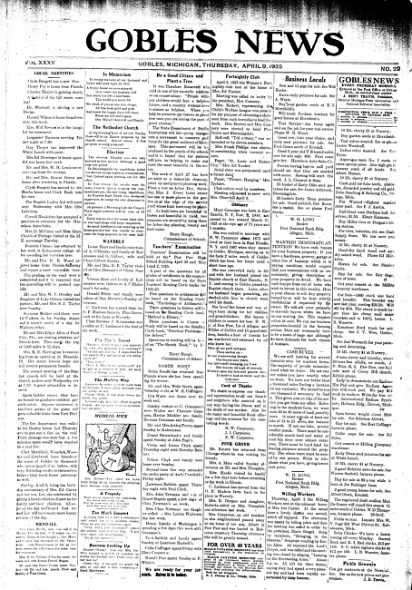 Gobles news. Vol. 35 no. 29 (1925 April 9)