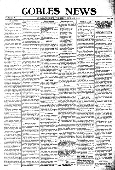 Gobles news. Vol. 35 no. 30 (1925 April 16)