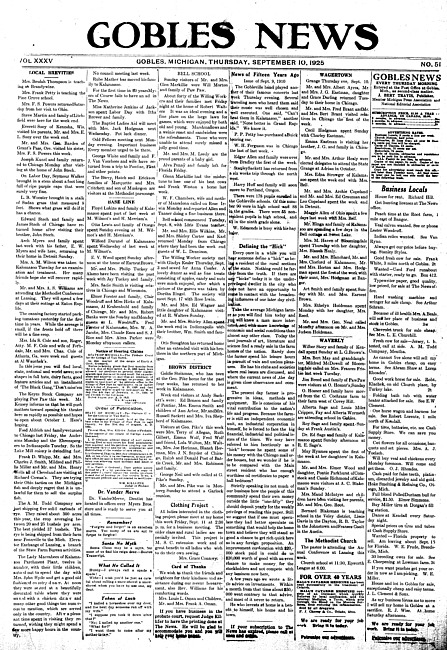 Gobles news. Vol. 35 no. 51 (1925 September 10)