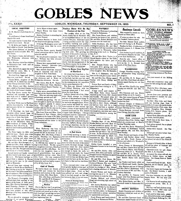 Gobles news. Vol. 36 no. 1 (1925 September 24)