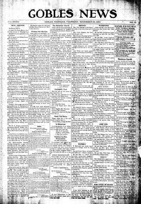 Gobles news. Vol. 36 no. 10 (1925 November 26)