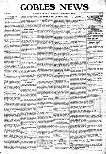 Gobles news. Vol. 36 no. 11 (1925 December 3)