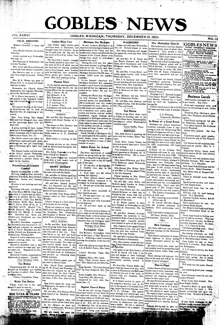 Gobles news. Vol. 36 no. 12 (1925 December 10)
