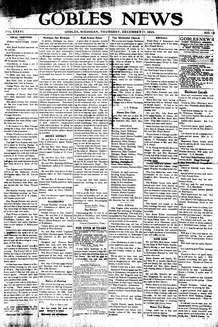Gobles news. Vol. 36 no. 13 (1925 December 17)