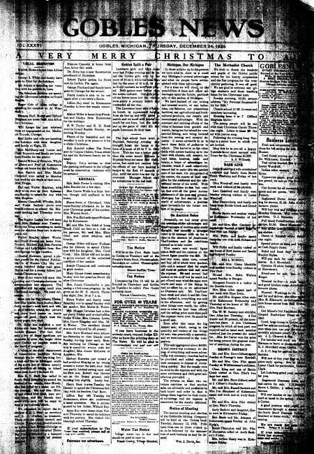 Gobles news. Vol. 36 no. 14 (1925 December 24)