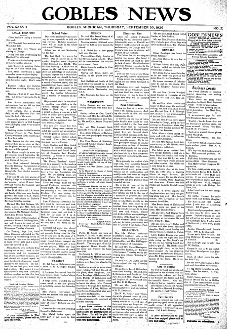 Gobles news. Vol. 37 no. 2 (1926 September 30)