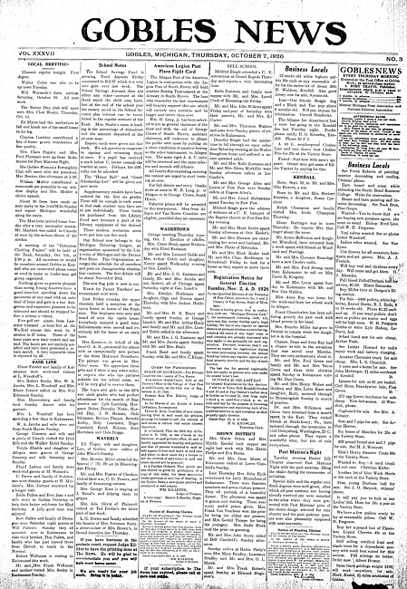 Gobles news. Vol. 37 no. 3 (1926 October 7)