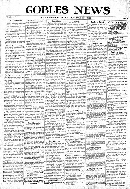 Gobles news. Vol. 37 no. 4 (1926 October 14)