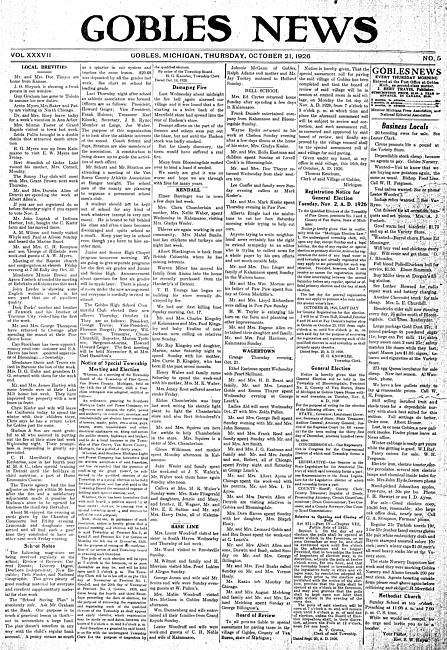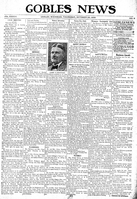 Gobles news. Vol. 37 no. 6 (1926 October 28)