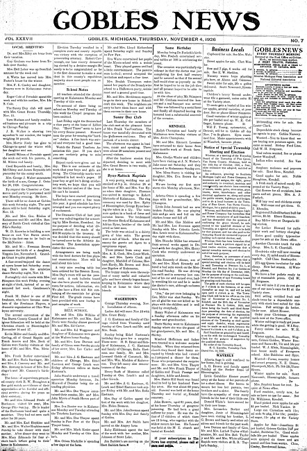 Gobles news. Vol. 37 no. 7 (1926 November 4)