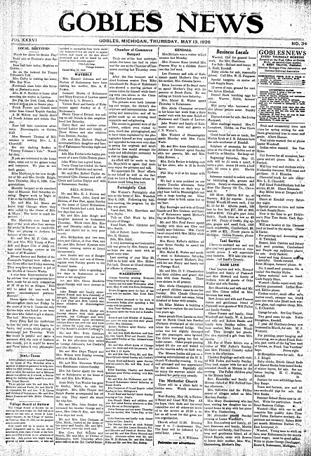 Gobles news. Vol. 36 no. 34 (1926 May 13)