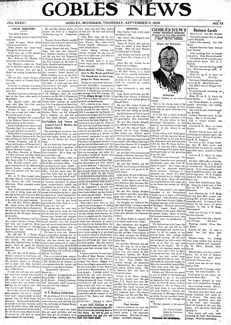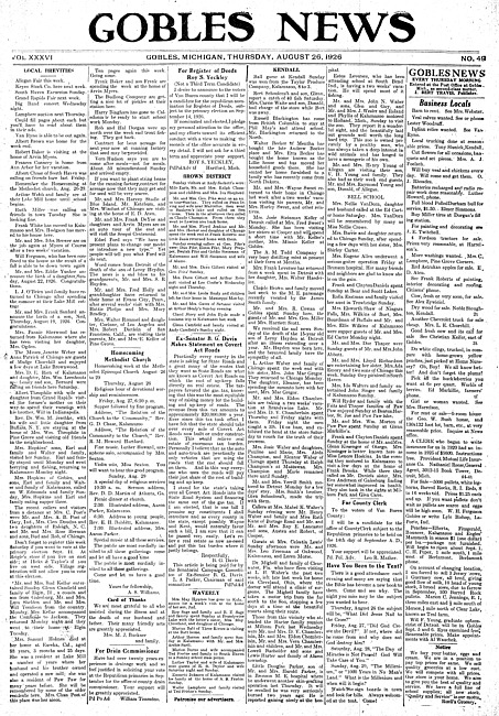 Gobles news. Vol. 36 no. 49 (1926 August 26)