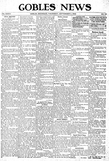 Gobles news. Vol. 36 no. 50 (1926 September 2)