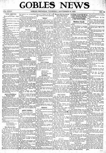 Gobles news. Vol. 36 no. 52 (1926 September 16)