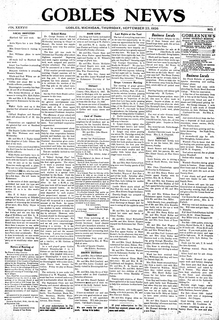 Gobles news. Vol. 37 no. 1 (1926 September 23)