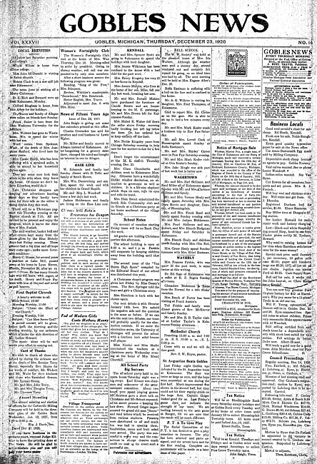 Gobles news. Vol. 37 no. 14 (1926 December 23)