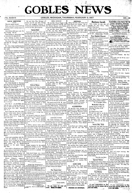 Gobles news. Vol. 37 no. 20 (1927 February 3)