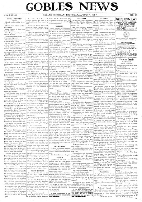 Gobles news. Vol. 37 no. 46 (1927 August 4)