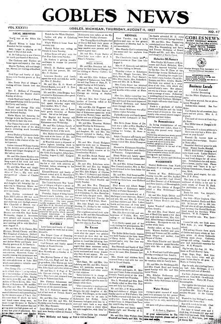 Gobles news. Vol. 37 no. 47 (1927 August 11)