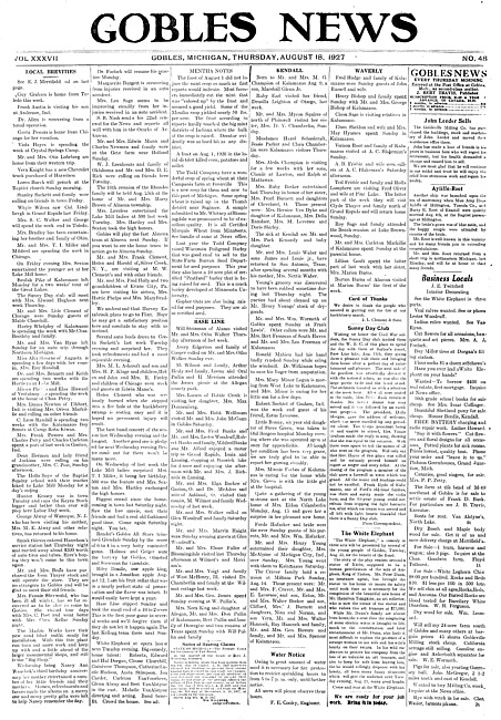 Gobles news. Vol. 37 no. 48 (1927 August 18)