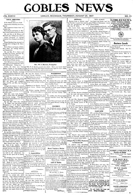 Gobles news. Vol. 37 no. 49 (1927 August 25)