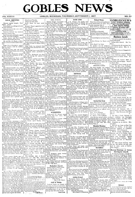 Gobles news. Vol. 37 no. 50 (1927 September 1)