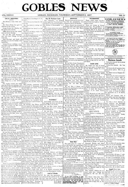 Gobles news. Vol. 37 no. 51 (1927 September 8)