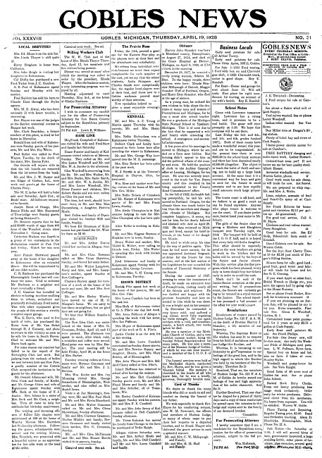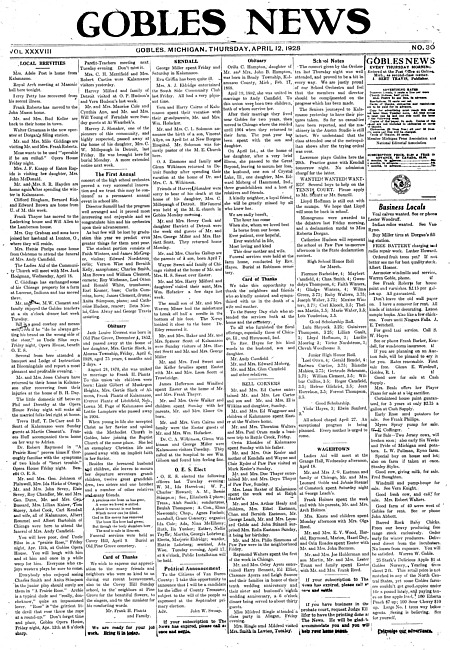 Gobles news. Vol. 38 no. 31 (19 April 1928)