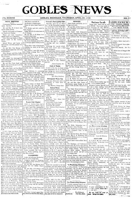 Gobles news. Vol. 38 no. 32 (1928 April 26)