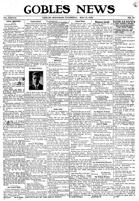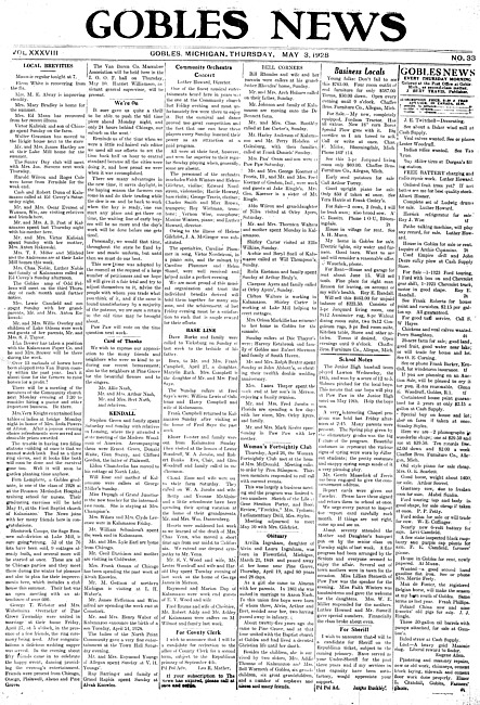 Gobles news. Vol. 38 no. 33 (1928 May 3)
