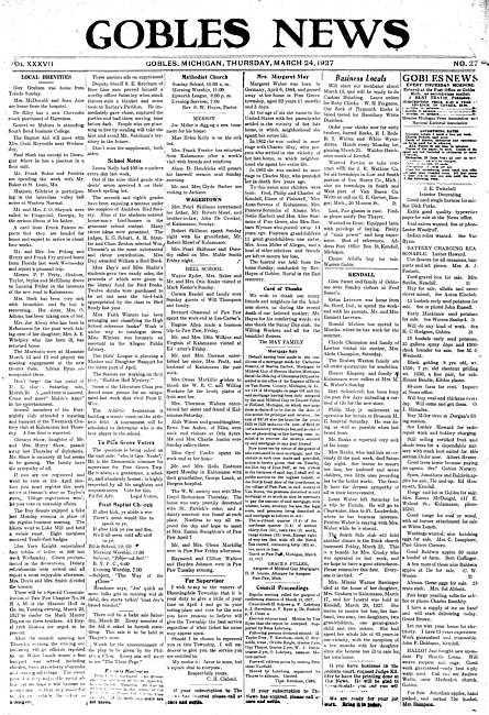 Gobles news. Vol. 37 no. 27 (1927 March 24)