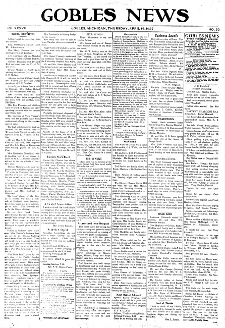 Gobles news. Vol. 37 no. 30 (1927 April 14)