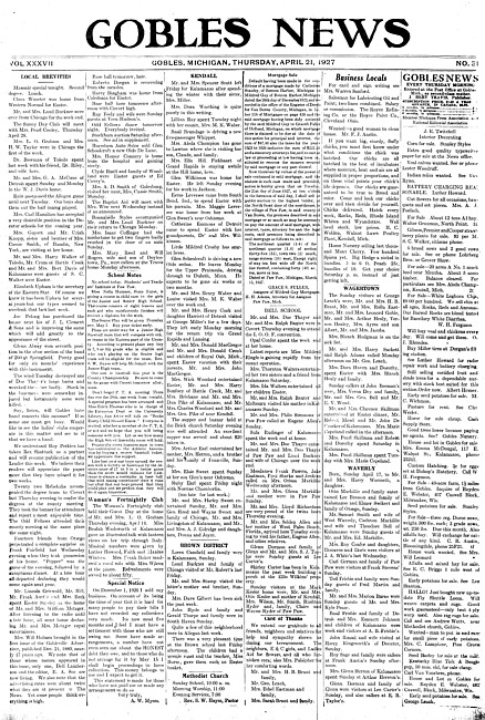 Gobles news. Vol. 37 no. 31 (1927 April 21)