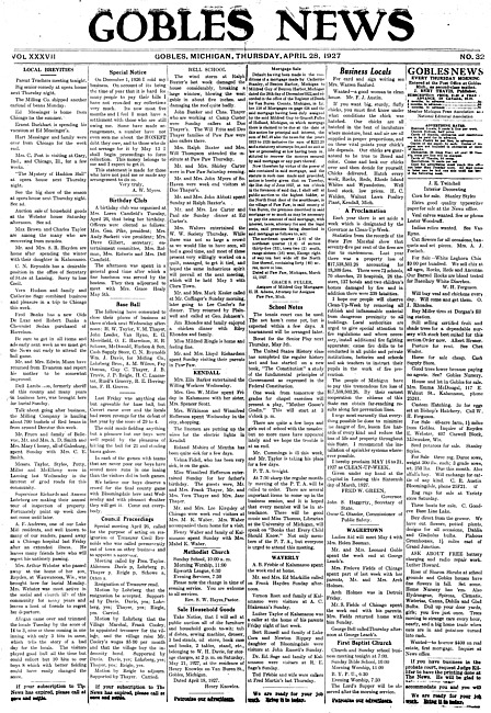 Gobles news. Vol. 37 no. 32 (1927 April 28)