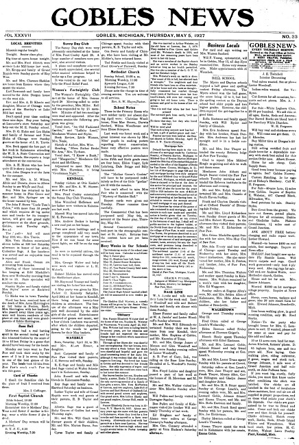 Gobles news. Vol. 37 no. 33 (1927 May 5)