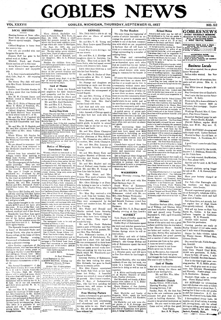 Gobles news. Vol. 37 no. 52 (1927 September 15)
