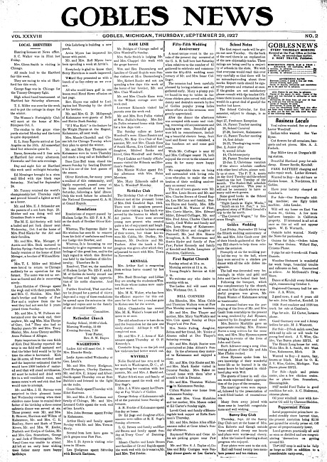 Gobles news. Vol. 38 no. 2 (1927 September 29)