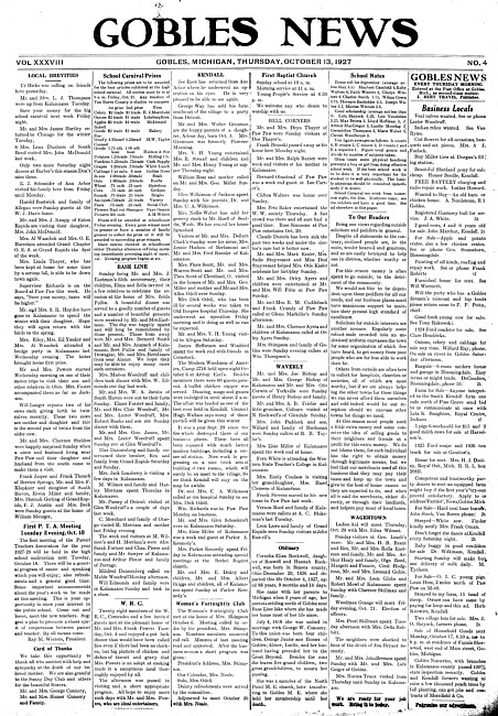 Gobles news. Vol. 38 no. 4 (1927 October 13)