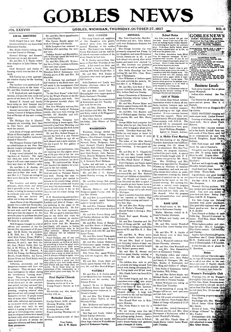 Gobles news. Vol. 38 no. 6 (1927 October 27)