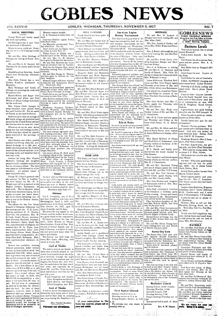 Gobles news. Vol. 38 no. 7 (1927 November 3)