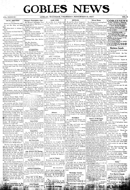 Gobles news. Vol. 38 no. 8 (1927 November 10)
