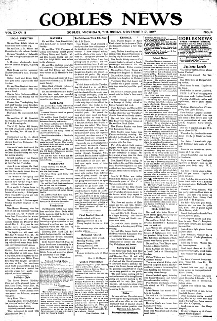 Gobles news. Vol. 38 no. 9 (1927 November 17)