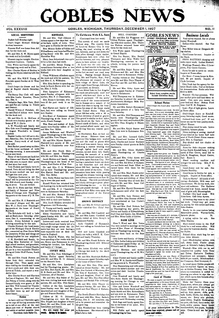 Gobles news. Vol. 38 no. 11 (1927 December 1)