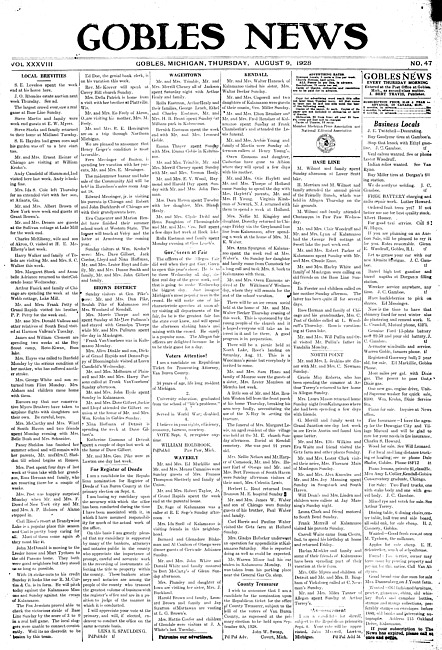 Gobles news. Vol. 38 no. 47 (1928 August 9)