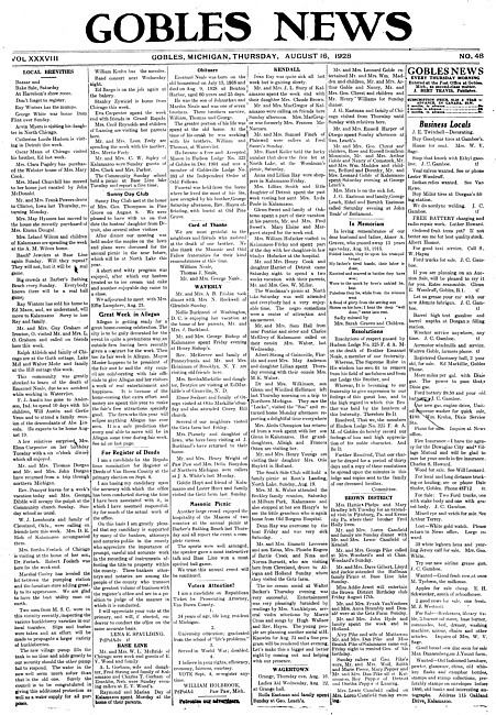 Gobles news. Vol. 38 no. 48 (1928 August 16)