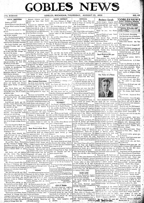Gobles news. Vol. 38 no. 49 (1928 August 23)