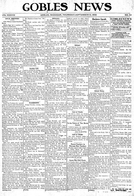 Gobles news. Vol. 38 no. 52 (1928 September 13)
