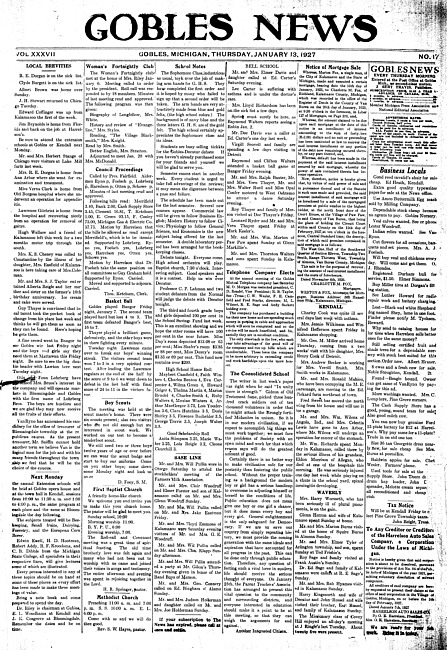 Gobles news. Vol. 37 no. 17 (1927 January 13)