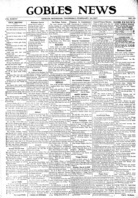Gobles news. Vol. 37 no. 23 (1927 February 24)